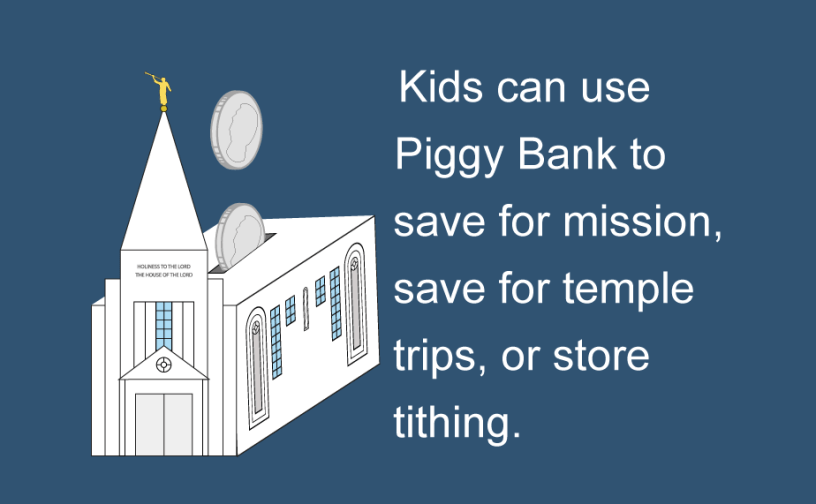 This is a piggy bank that helps children remember to save for their mission, save for a temple trip, or even store their tithing. It becomes a 3D container that can actually store coins.