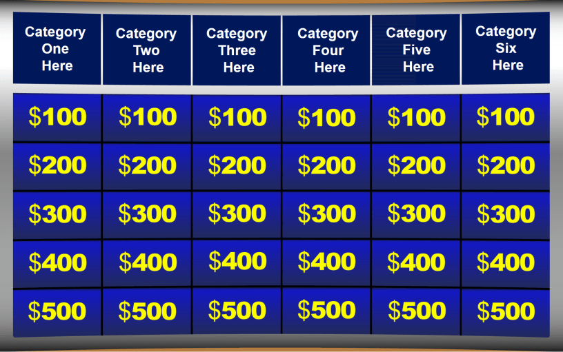 TIP: Make a category about the class members themselves. Call the category. “You!” or “Our Class” etc. Then fill it with questions about class members, or clues of their identity.