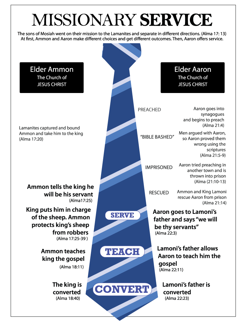 The sons of Mosiah began their mission with the Lamanites. They separated. As you can see in the PDF, Ammon and Aaron had two very different experiences. Ammon immediately began to serve. In contrast, Aaron immediately began to preach.