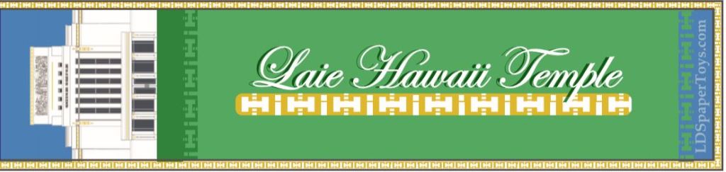 This is a Laie Hawaii Bookmark. Take a look at the pdf dowload below. You can cut out each bookmark, fold in the middle, and create a double sided bookmark-each with a unique side. (There is also a less-ink version)